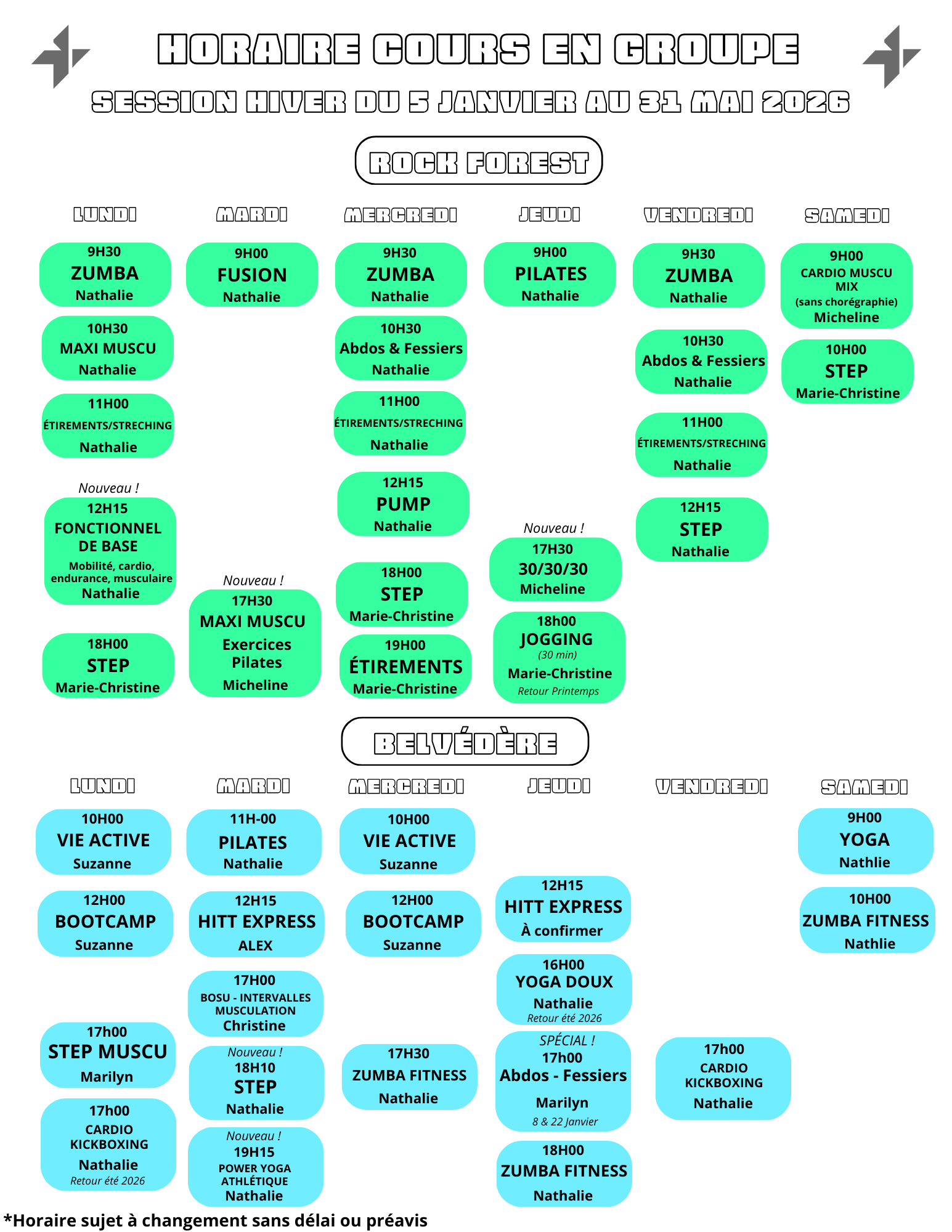 Découvrez la liste de nos cours de groupe ainsi que la liste des cours semi-privé.