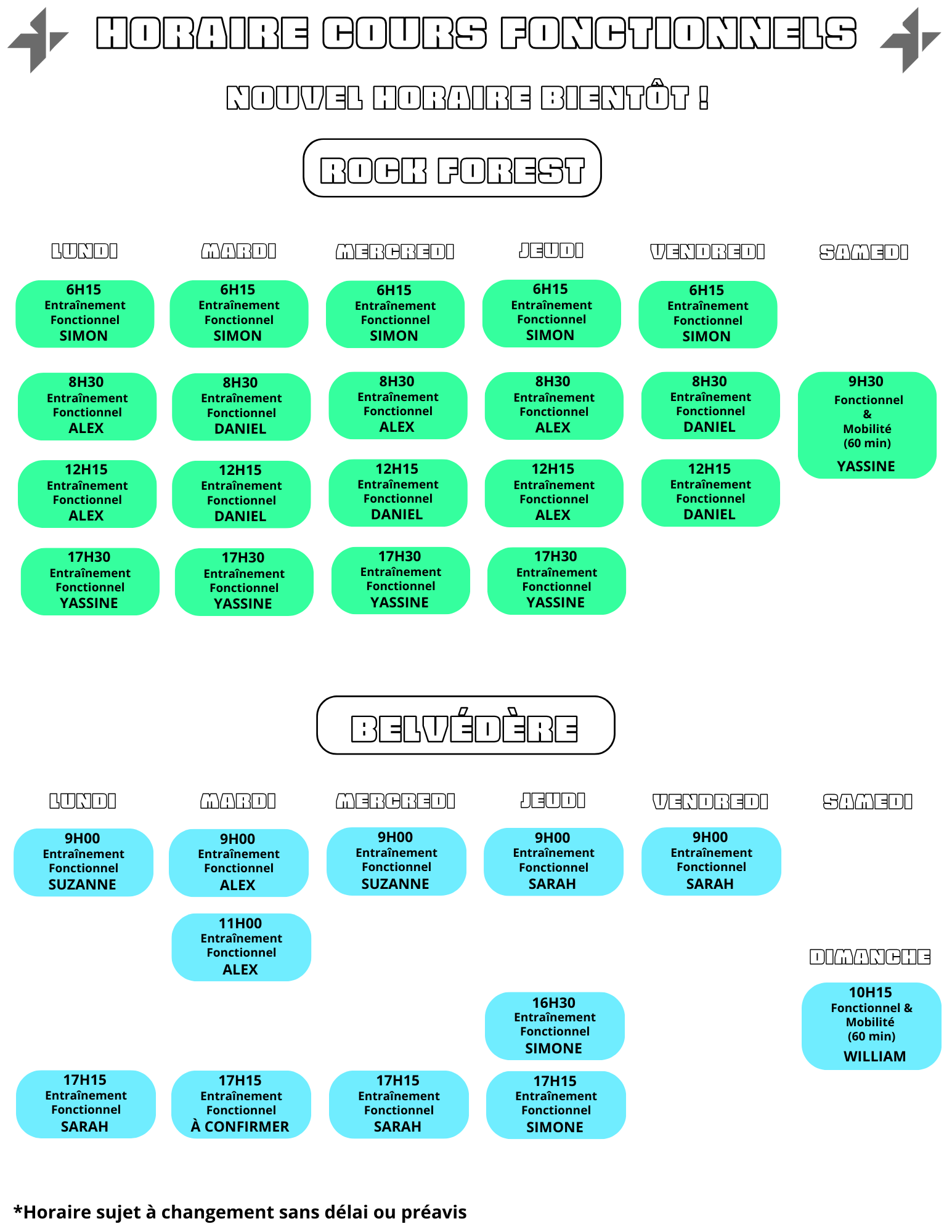Découvrez la liste de nos cours Semi-privé et l’horaire.